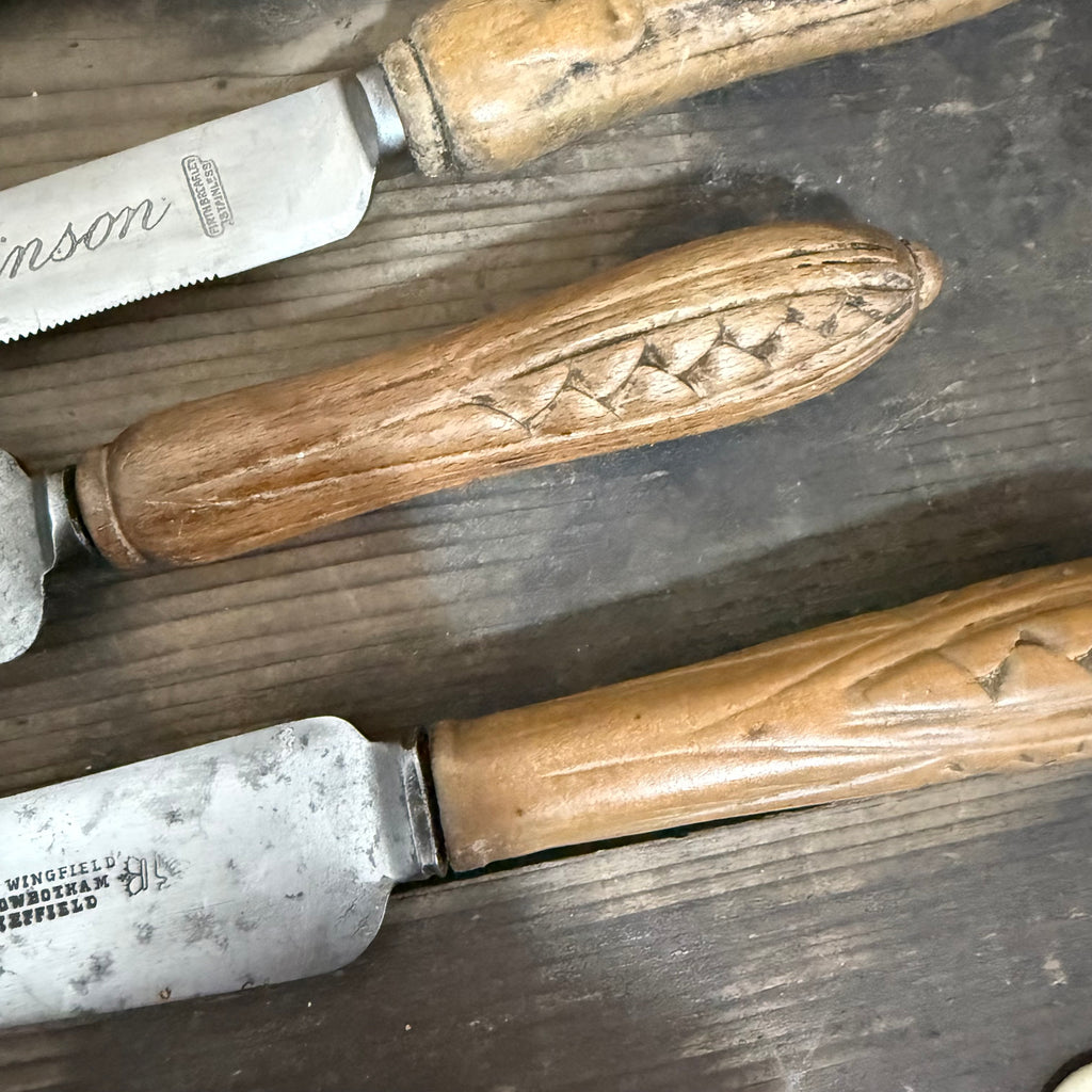 Antique Carved Handle Bread Knives