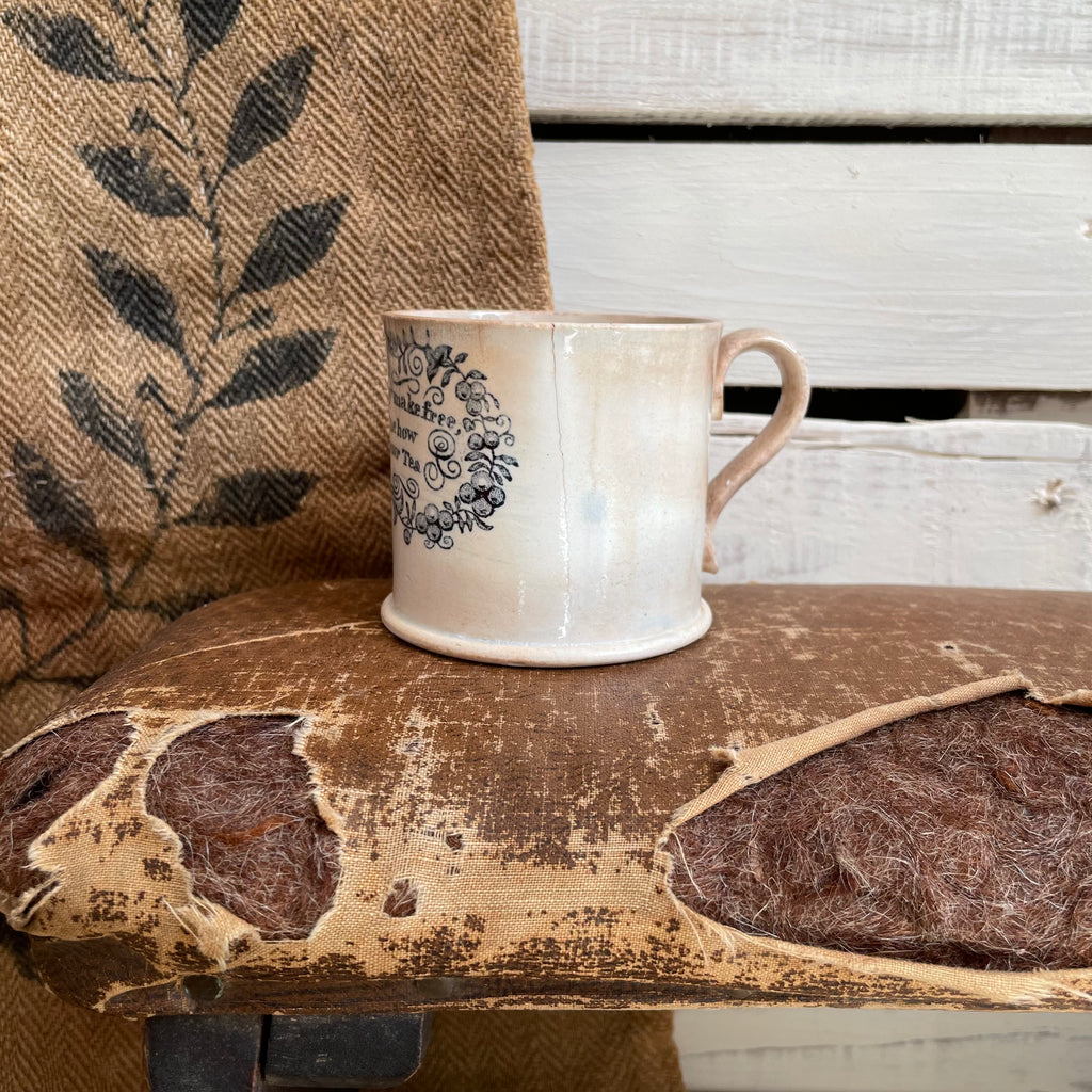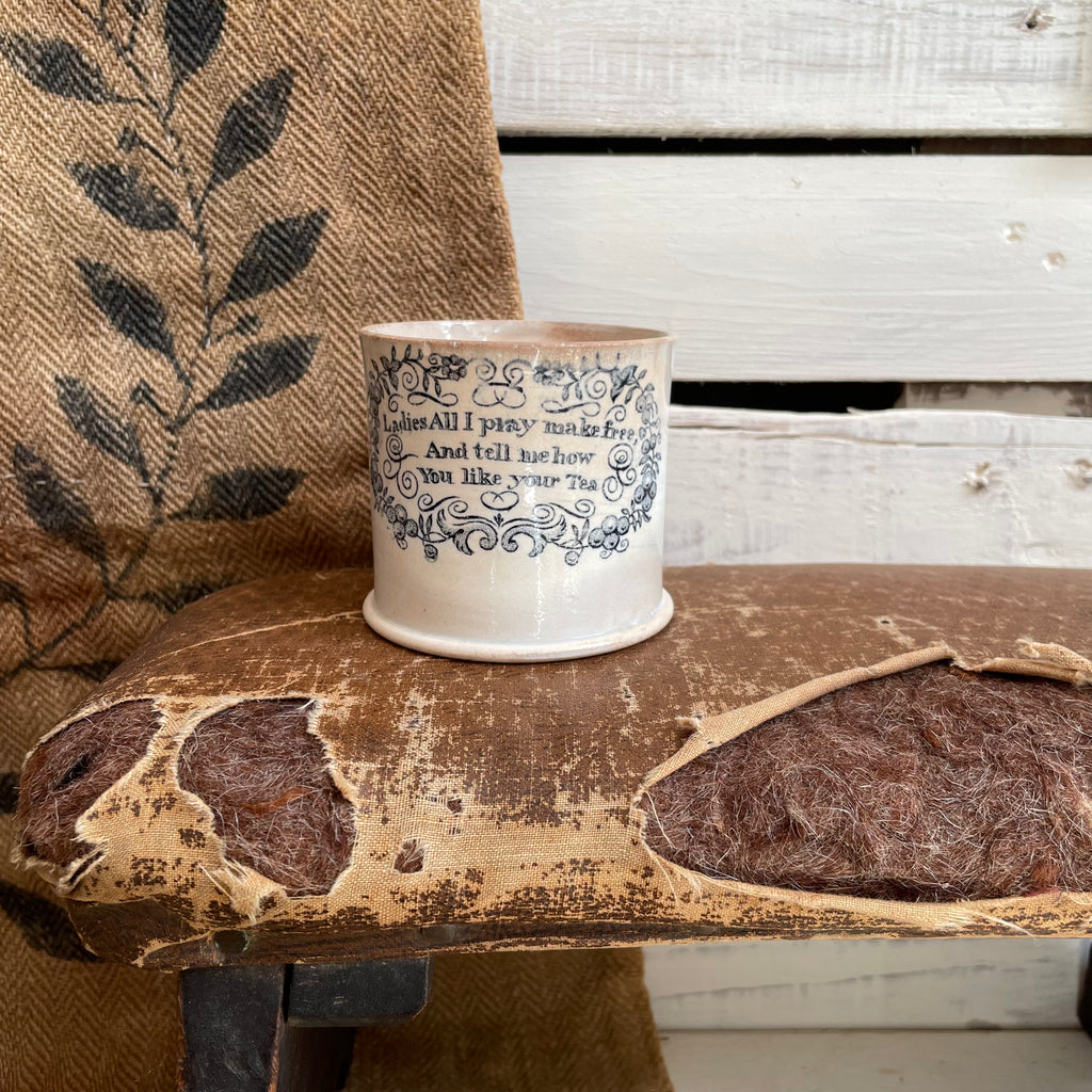 At No.4 we have been incredibly lucky to source the most beautiful 1840’s Motto Mug. These are extremely hard to find and are stunning. This plate is printed with the phrase 'Ladies All I Play make free And tell me how You like your Tea.'
