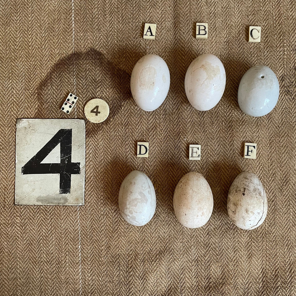 These super rare dummy eggs are always popular and very often hard to find. No.4 have managed to source quite a collection to give you the option of all different types of eggs, from mint condition to well loved and looked after by the hens.